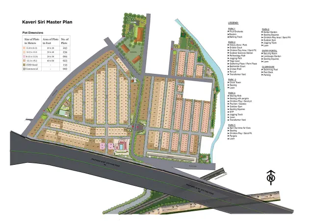 Amenities: At Kaveri Siri, there is a wide range of amenities, including a 25,000 sq. ft. colonial style clubhouse (G+2 floors), state of art swimming pool, grand entrance arch, 4 entry and exit points, 9-12 meters wide roads, 6 lush green parks, exclusive gazebos, outdoor exercise stations, cafes, badminton court, cricket pitch, table tennis, dribble court, banquet hall and much more.